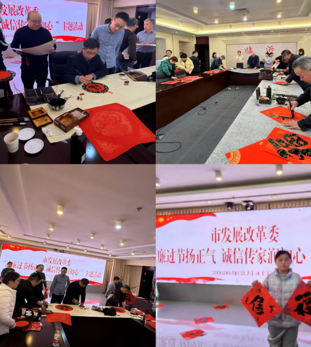 为弘扬廉洁文化、培育诚信家风,2月4日,市发展改革委联合选派红领书记任职单位及相关产业链专班,共同举办“清廉过节扬正气,诚信传家润初心”主题宣传活动,旨在以中华传统艺术为载体,将诚信理念深植于节日文化与家风传承之中。